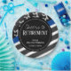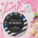 Unique and fun personalized retirement "cheers to retirement" blue line design police officer themed retirement party supplies. All text is adjustable. fun stylized stars on a faux wood textured background.