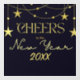 Raise a toast to the future with "Cheers to the New Year" written in radiant gold text, accented by shimmering stars on a deep blue background. Personalize it with a custom date to make your celebration uniquely memorable and stylish.