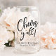 A fun and unique wedding can glass party favor featuring "Cheers Y'all!" in a stylish script, your first names joined together by a heart and your wedding date.