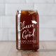 A fun can glass to celebrate the graduate. "Cheers to the Grad" is written in a modern white script with a grad cap on top and you can personalize their name, class year and school in simple white typography.