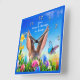 Cheery Daffodils, Butterfly, Bunny peaking through Easter Eggs Personalized Easter Clock with Your Name or Easter Message or Delete. Wonderful Easter Birthday Gifts for her Easter Wall Decor. CALL Designer Linda: 239-949-9090 to make Design, Product or Color CHANGES. Super pretty and cheerful to brighten someone's day.
