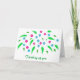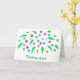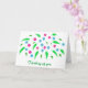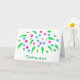 A colorful spray of reddish pink and blue flowers is printed on custom Thinking of you, cards. The text can be easily customized on the template form.