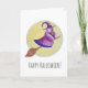 Send cheery Halloween greetings with this cute hand drawn card! Card features a cheerful witch flying on her broomstick across a full harvest moon. "Happy Halloween" message beneath; blank on the inside.