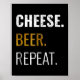 Cheese Beer Repeat , Funny Distressed Novelty Poster