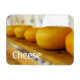 Photograph of several yellow cheese wheels resting on a wood shelf. Customizable text, "Cheese" printed in bottom left corner.