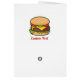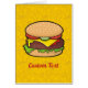 Cheeseburger cartoon illustration. Junk food outline icons yellow pattern background. Custom text.