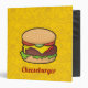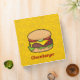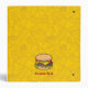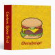 Cheeseburger cartoon illustration. Junk food outline icons yellow pattern background. Custom front, back and spine text.