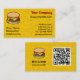 Cheeseburger cartoon illustration. Junk food outline icons yellow pattern background. Custom text.