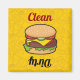 Cheeseburger cartoon illustration. Junk food outline icons yellow pattern background. Custom text.
