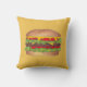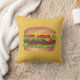 Throw pillow features an original marker illustration of a cheeseburger with tomato and lettuce on a bun.