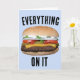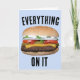 CHEESEBURGER BIRTHDAY CARD. EVERYTHING ON IT. INSIDE READS: GO WILD ON YOUR BIRTHDAY