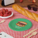 Cheeseburger Graphic on Green - Add Own Words Paper Plates
