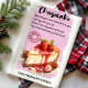 Add a sweet touch to your kitchen with this Cheesecake Recipe personalized kitchen towel. Featuring a delicious cheesecake recipe, this towel is perfect for both decoration and practical use. Customize it with your name or a special message, making it a thoughtful gift for cheesecake lovers and home bakers.