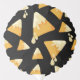 A yummy pattern of dripping cheesy nachos on a black background. Sure to get appetites stimulated!