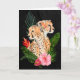 Cheetah Bouquet II by Annie Warren. Two cheetahs are framed by tropical leaves and greenery against a black background. | 164453Z