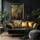 Cheetah Face Mosaic Cat Stylish Black & Gold Throw Pillow