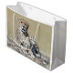 So very happy with the quality of this bag! The thickness of the paper along with the glossy finish I just love it! Can’t wait to give our pup his gifts in this awesome custom gift bag! The printing came out amazing! The black crisp clear printing on the white bag looks amazing! Very pleased with this purchase!