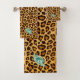 Cheetah Monogram Leather and Leopard Pattern Bath Towel Set