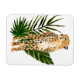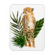 Cheetah Outlook I by Annie Warren. A cheetah in a watercolor style looks on with tropical green leaves in the background. | 164730Z