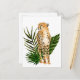 Cheetah Outlook I by Annie Warren. A cheetah in a watercolor style looks on with tropical green leaves in the background. | 164730Z
