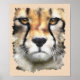 A portrait of a beautiful cheetah rendered in pastels by award winning artist Kathie Miller.