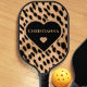 Cute tan brown and black cheetah print pickleball paddle with heart shape for women and girls. Customize the name for a personalized gift.
