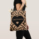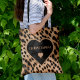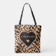 Cute tan brown and black cheetah print tote bag with heart shape for women and girls. Customize the name for a personalized gift.