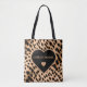 Cheetah Print Pattern Tan Brown & Black Heart Tote Bag