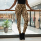 Tan brown and black cheetah print leggings for women. Black waistband.