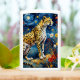 an adorable cheetah with flowers in the style of a Van Gogh painting