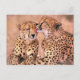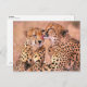 Animal card showing a cheetah pair in south africa. The cheetah (Acinonyx jubatus) is a large feline inhabiting most of Africa and parts of Iran. The cheetah can run faster than any other land animal, as fast as 112 to 120 km/h (70 to 75 mph). in short bursts covering distances up to 500 m (1,600 ft), and has the ability to accelerate from 0 to 100 km/h (62 mph) in three seconds. Its main hunting strategy is to run down swift prey such as various antelope species and hares. Almost every facet of the cheetah's anatomy has evolved to maximise its success in the chase, the result of an evolutionary arms race with its prey. Due to this specialisation, however, the cheetah is poorly equipped to defend itself against other large predators, with speed being its main means of defence.