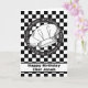 Cool birthday card featuring a chef and cook's hat over a black and white checkered background. Perfect for chef birthdays and culinary school graduations