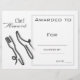 An award certificate award with a chef knife and fork simple cooking theme image in perfect for encouraging a young cooking student. You can write in your own details. A great resource for a cooking school.