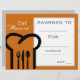 An award certificate award with a chef cooking chef hat theme image in perfect for encouraging a young cooking student. You can write in your own details. A great resource for a cooking school.