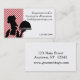 A perfect business card for chefs, restaurants and catering businesses. Design features chef carrying covered plate with red and white checkered side border.