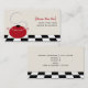 A food industry business card featuring an illustration on front of a red cooking pot with steam escaping from lid sitting on a black and white surface. Personalize the text on front and back with your contact information.