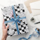 Chef Checkerboard Black White Pizza Pattern Wrapping Paper