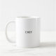 This custom coffee mug features "Chef", meaning "Chief" in French, in classic sans serif typography. Makes a funny gift for the boss, or anyone who is good at taking charge, and with editable text, you can customize it on both sides. Several styles and colors available.