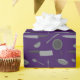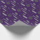 Cool purple gift wrap printed all over with an all-over pattern of kitchen pans, cutlery and dishes. Perfect to wrap gifts for cooks, chefs and foodies
