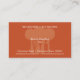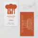 A graphic of an orange chef's hat with kitchen tools creating negative space within dominates this business card. Versatile enough to work for a catering company, personal chef or baker. The graphic is repeated on the reverse as a watermark against solid orange to offset your contact information. Available in alternate colors with matching products.
