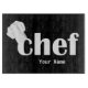 A graphic illustration of a chef hat on a cutting board. The cutting board has a text template for your personalization. The background color is customizable. ©2013charmainepaulson
