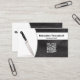 Black leather photo sets off the background of this business card design featuring a photo placeholder on the left with template name and title on the right. The back includes a coordinated design and colors with text fields for the business name and details. Keep or replace the placeholder photo with your vertical format photograph and replace the QR code with yours. Fill in the template fields or click customize to select a font style, size, and color you like.