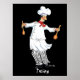 A whimsical watercolor view of a tossing chef.