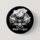 This chef skull product entitled "Iron Chef," features a cool and classy metallic-like skull in front of a silver platter wearing a chef's hat, on top of a damask design. Crossed carving chef knives replace traditional crossbones. An excellent choice for the executive chef, sous chef, personal chef, home cook, line cook, or any culinary professioanl with a fierce passion for cooking. And skulls.