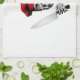Chef skull holding chef knives and wearing a red chef hat with logo.