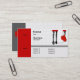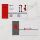 A graphic illustration of a kitchen counter with a rack of cooking utensils on a business card.