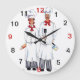 An original watercolor painting by Anne Ormsby of two chefs adorns this fun wall clock.