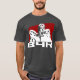 My 11 yo wore adult XL (5’7” 165#). The 8yo is small framed. She wore adult small and tied it in the back. Grandma wore adult large with long sleeve shirt underneath. Tall girl adult medium. Dark haired male adult large. Good quality dark Heather gray, Gildan brand shirt. -it was next up from basic choice and cost about $20 per shirt. Not too thick or thin. Washed and dried well, no major shrinkage. Not see-through. Can wear a bra under it fine. Screen print is just as shown and well done, front and back.