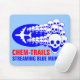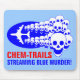 Contrails or Chemtrails? Whichever way you look at them pollution? Secret military testing? Weather modification? Mind control? Population kull? Aliens? World wide conspiracy of the Illuminati and the New World Order, there's no doubt they are killing our blue skies. The message of this design could not be clearer. "Chem-Trails Streaming Blue Murder!"