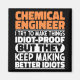Funny Chemical Engineer Sayings "Chemical Engineer I Try To Make Things Idiot Proof But They Keep Making Better Idiots". Grab this Funny Chemical Engineer design as a funny gifts for an awesome mom, dad or friend.